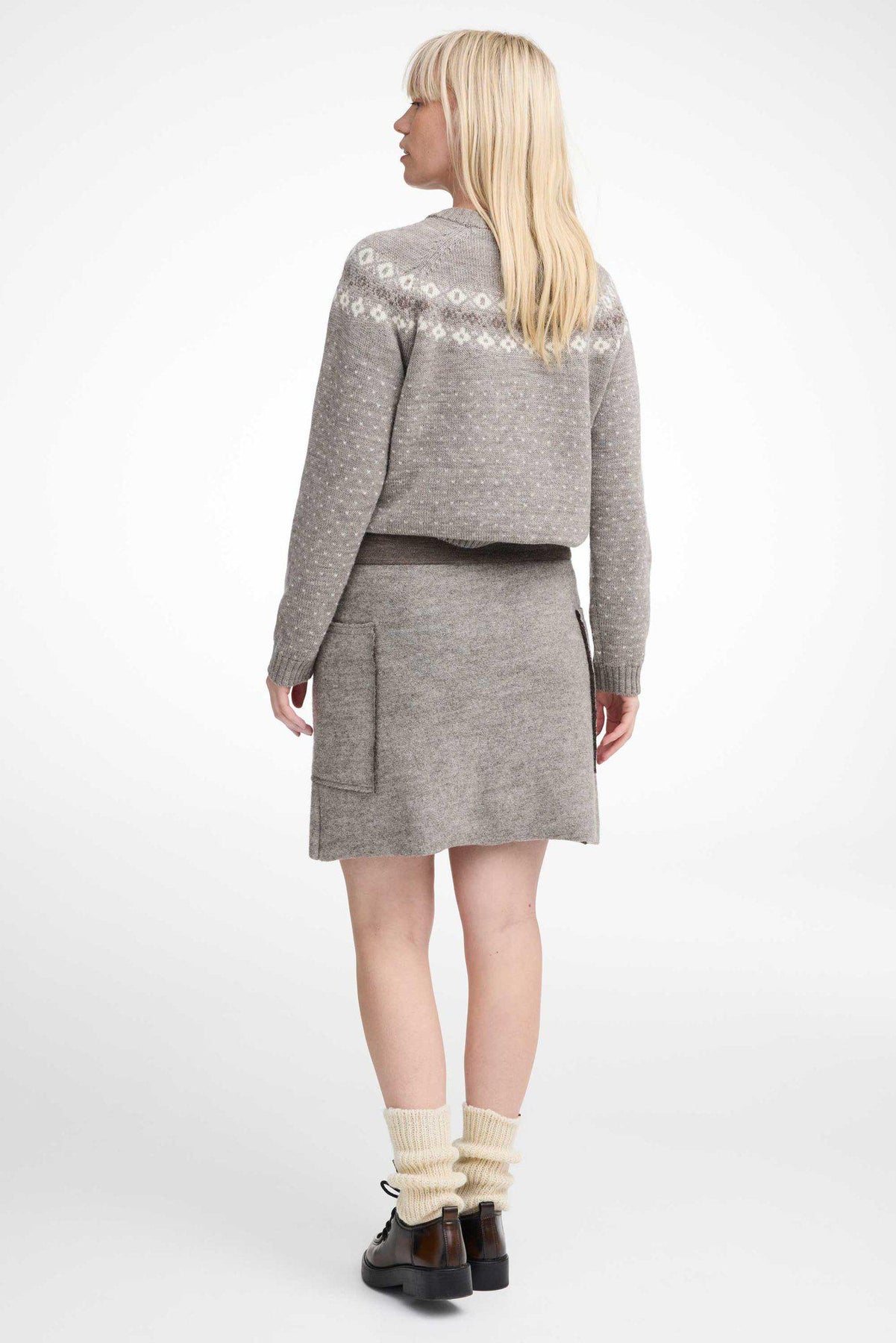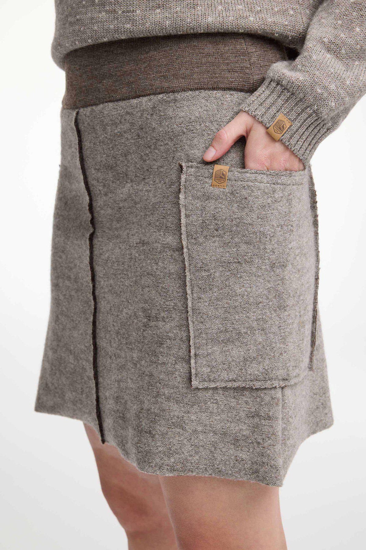 Härlig kjol i 100% filtad ull och ribbstickat midjeband. Sidfickorna är både funktionella och fungerar som extra designelement. Litet logomärke i jacron. Längd på storlek 38 ca. 50cm.