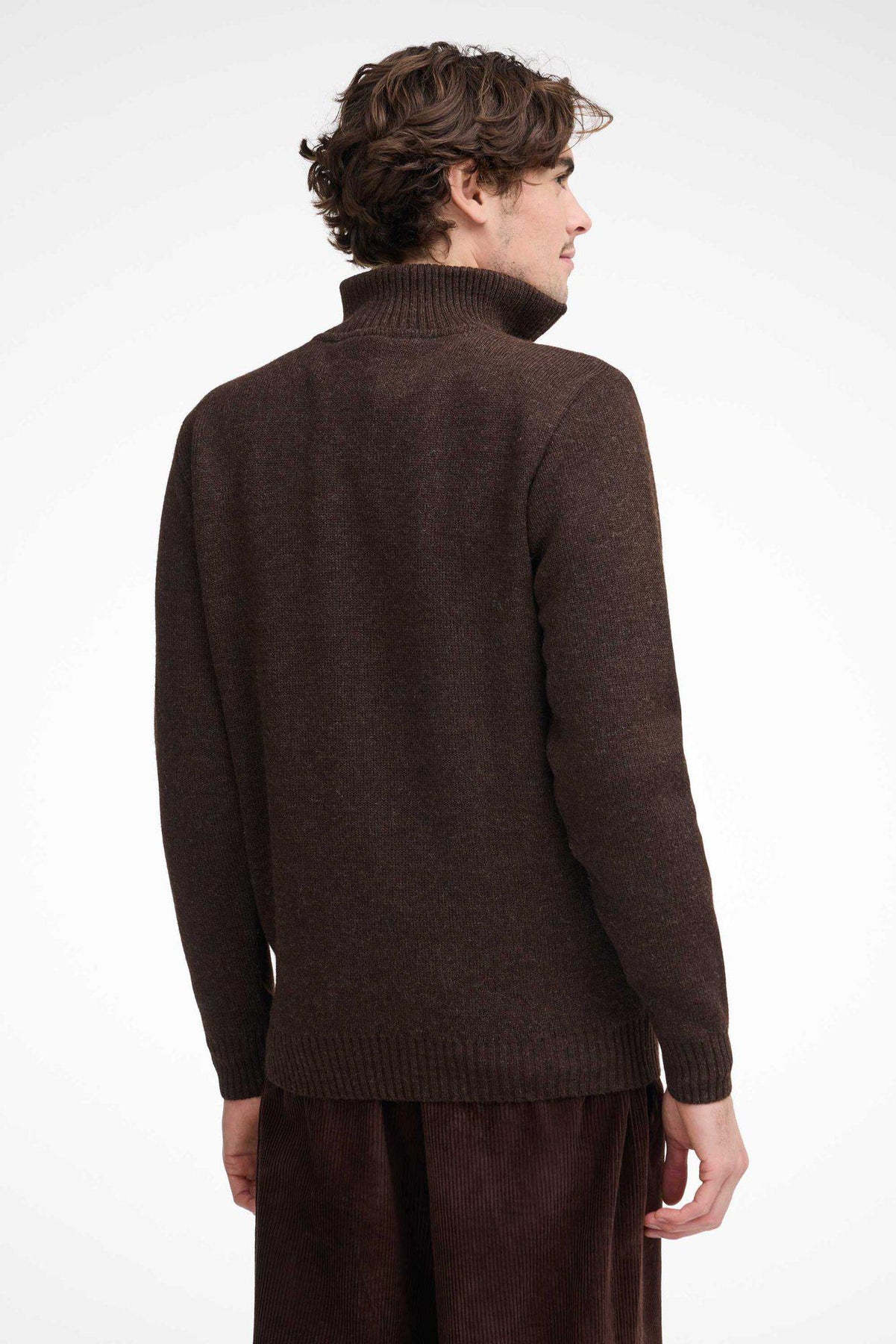 Troyer mit Reißverschluss und robustem Rippstrickkragen. Der Pullover ist aus 100% reiner, ungefärbter Wolle gestrickt. Logo-Badge am linken Oberarm.
