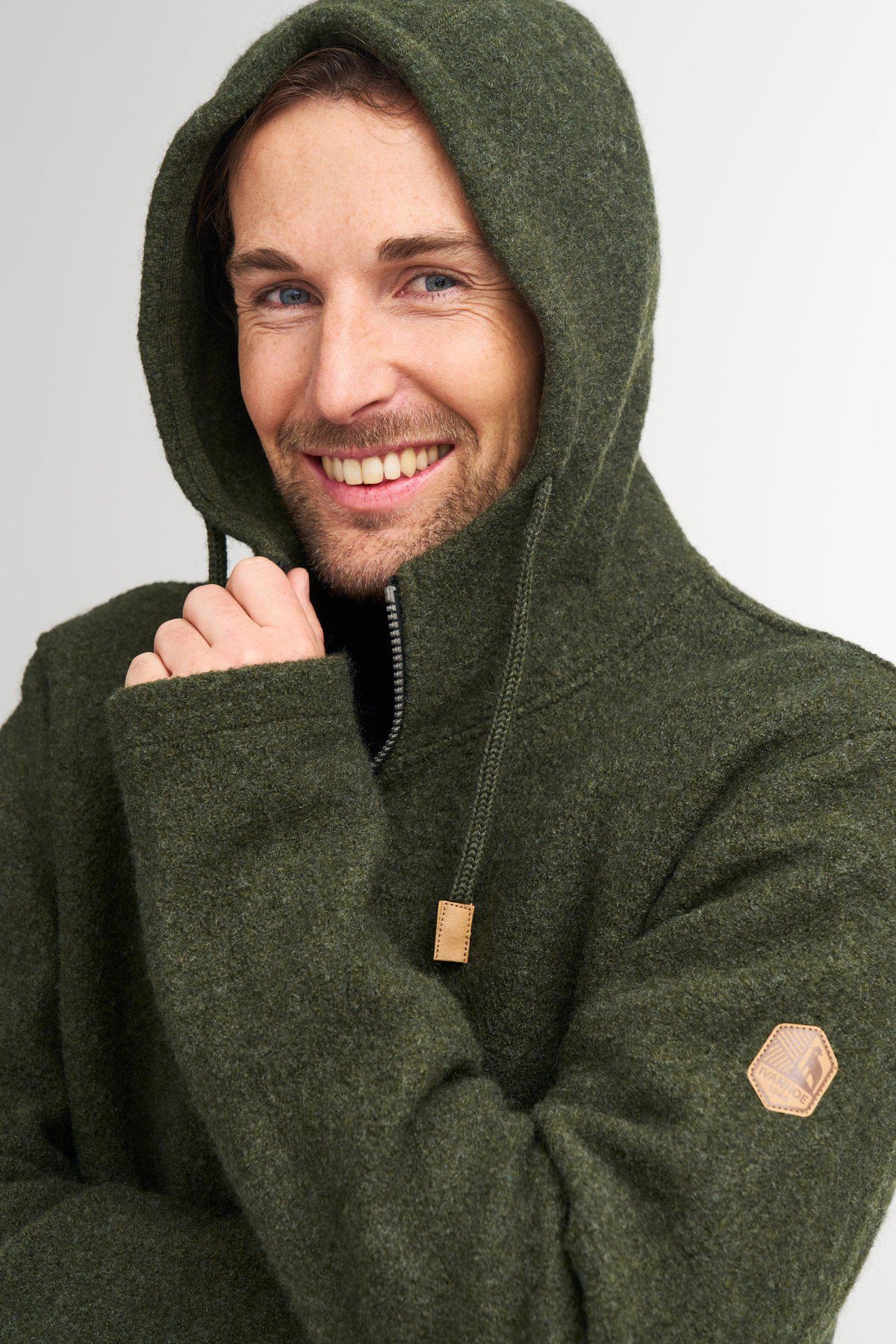 Diese schwere Kapuzenjacke in einer 800g gewalkten Wollqualität wird Sie garantiert warm halten. Sie ist aus 100% Wolle gestrickt, wobei die Wolle mulesingfrei und das Garn Bluesign®-zertifiziert ist. Die Jacke hat seitliche Reißverschlusstaschen, einen Kordelzug an der Unterseite und ein Logo-Badge auf dem linken Oberarm aus Jacron. Die Jacke ist außerdem mit einer zusätzlichen Innentasche ausgestattet.