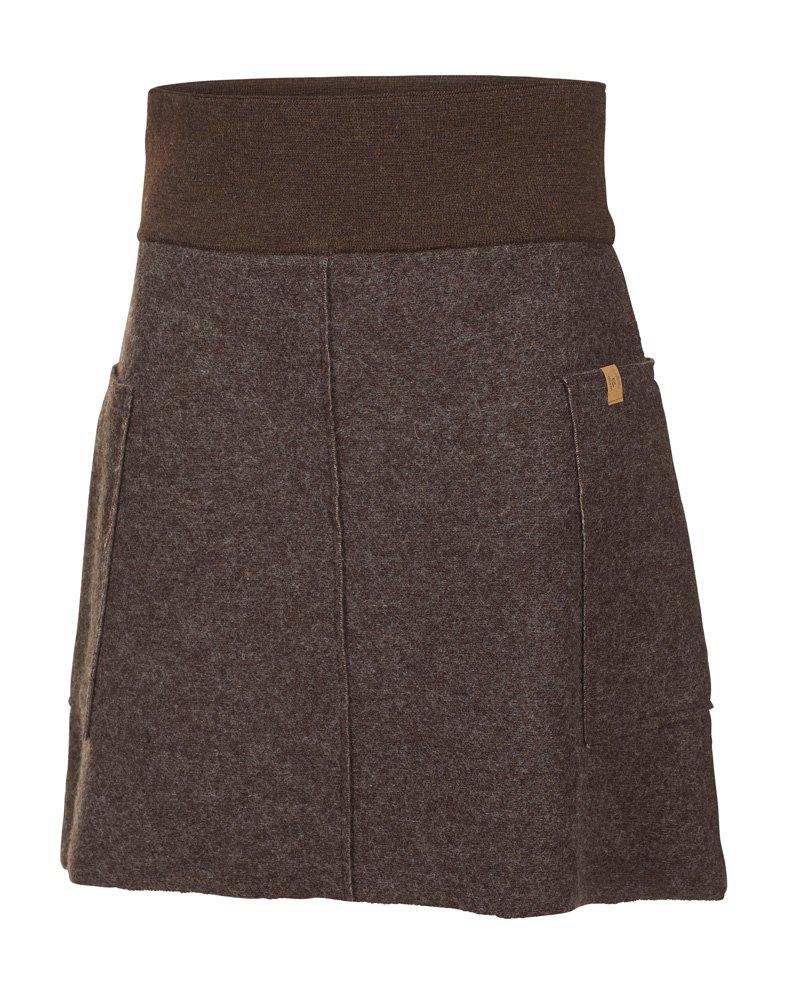 Skirt in 100% boiled wool and with generous side pockets. Stretchy waistband and small logo badge in jacron. Size 38 measures approx. 50cm.