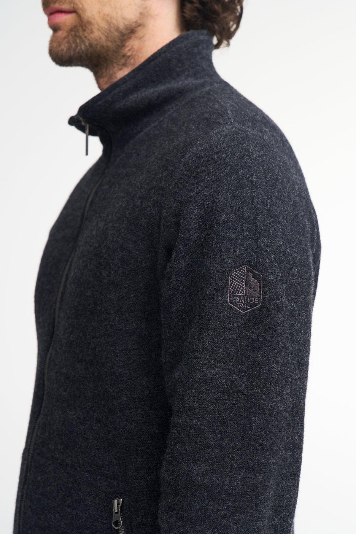 Bruno full zip - Diese klassische Jacke mit durchgehendem Reißverschluss ist aus unserer dünneren, kühleren und weicheren gewalkten Wollqualität mit körpernahem TENCEL® gestrickt. Seitliche Reißverschlusstaschen und Logo-Stickerei am linken Oberarm.