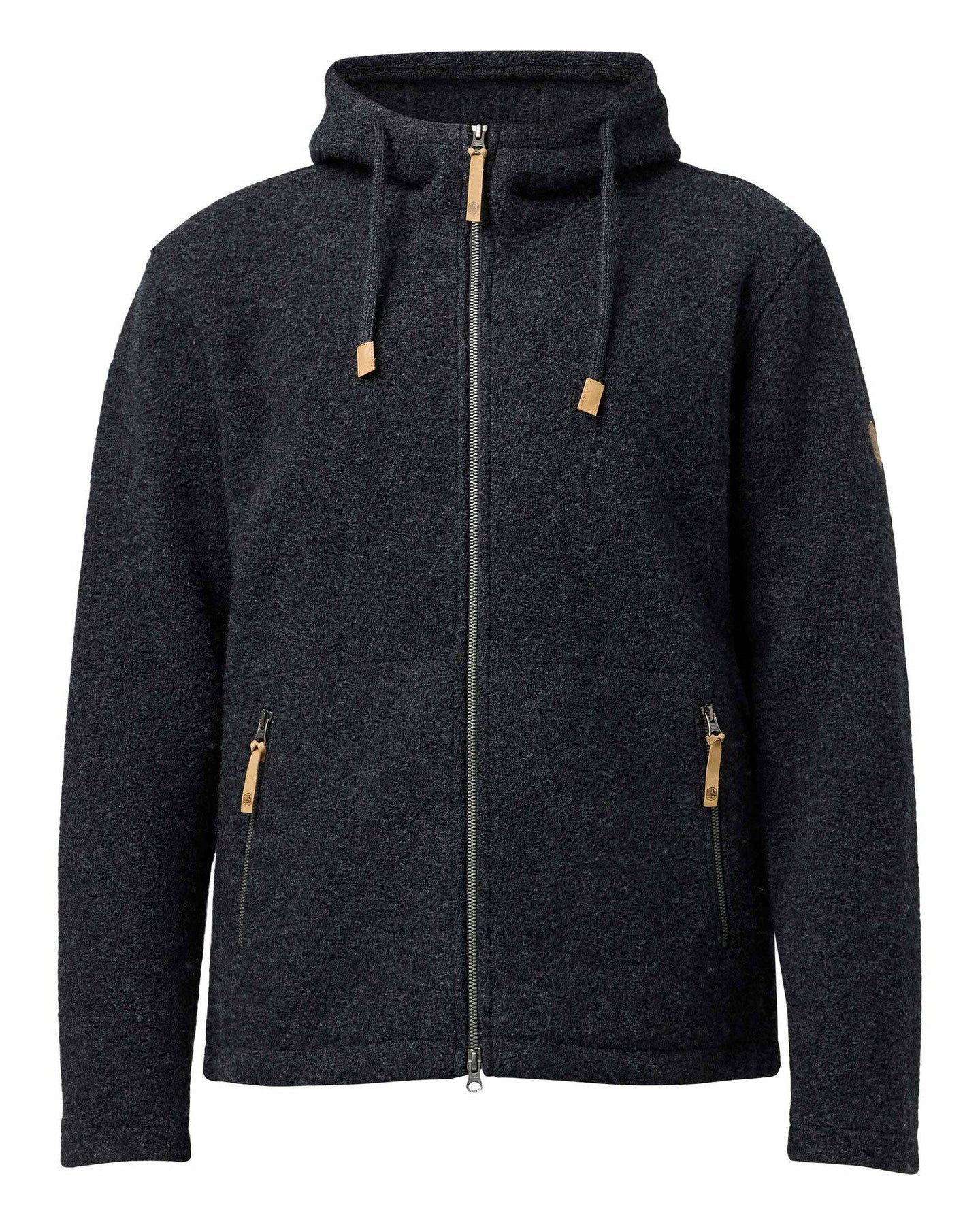 Härligt robust ulljacka med huva stickad in 100% filtat ull och i en kraftig 800g-ullkvalitet. Det kraftiga och täta ullmaterialet gör plagget motståndigt till vind, utan att säga att det är helt vindtätt. Dragkedja i sidfickorna samt en extra innerficka i mesh. Dragsko i huvan gör att du kan knyta åt och skydda mot både vind och kyla. Logomärke i jacron upptill på vänster ärm. Helt enkelt den perfekta ulljackan.