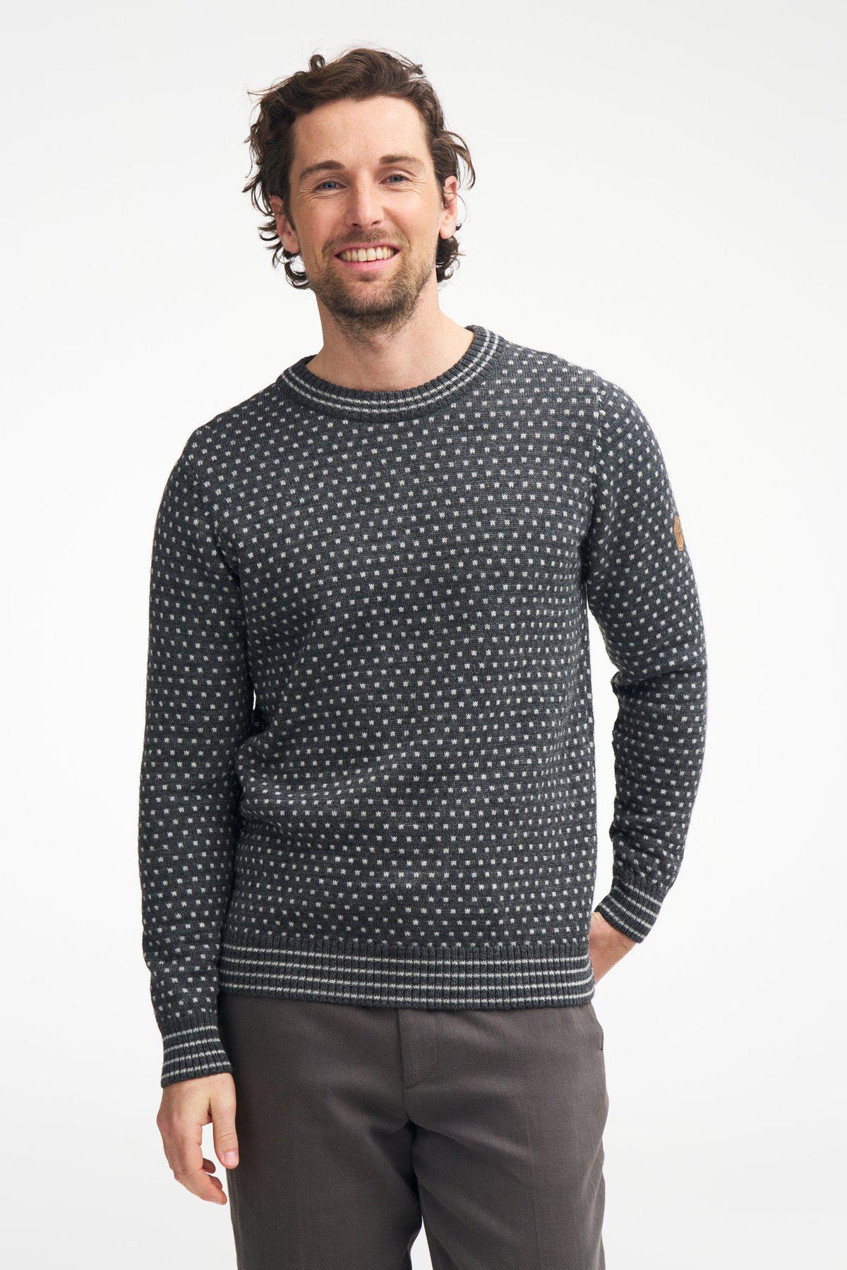 Classic crewneck with a typical Scandinavian expression. Knitting in 100% mulesingfree wool and yarn that is Bluesign® certified. Ribknitted cuffs down at body and arms and logo badge in jacron on upper left arm.